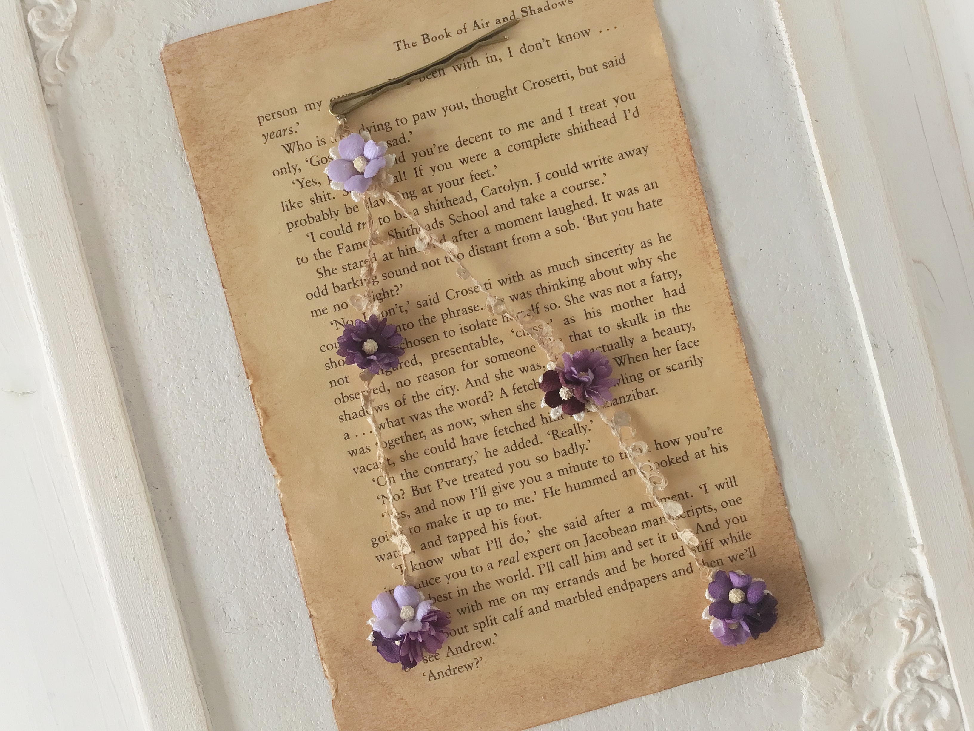 染め花のガーランド付きヘアピン パープル Iichi ハンドメイド クラフト作品 手仕事品の通販